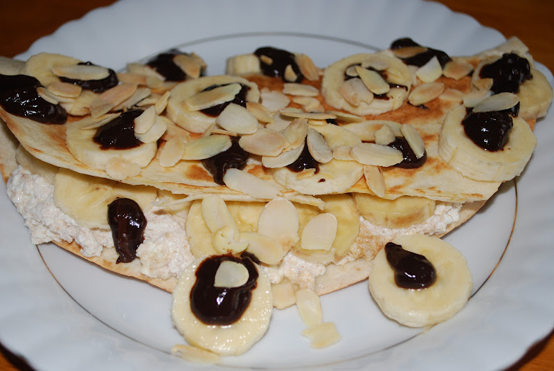 Przygotowując tą potrawę zainspirowałam się przepisem na Pitę z bananem i twarożkiem zamieszczoną w ostatnim numerze czasopisma Sól i Pieprz (maj-czerwiec, 3/2012) na stronie 43.